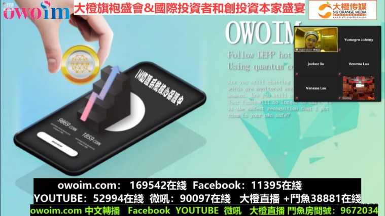 此盛宴也通过合作伙伴量子云生态学OWOIM线上进行了实时直播, 让更多对投资者在线上聆听与观赏9家项目方的呈现, 当天晩上节目结束前线上的观看人数也到达了169,543 非常可观的数字 !