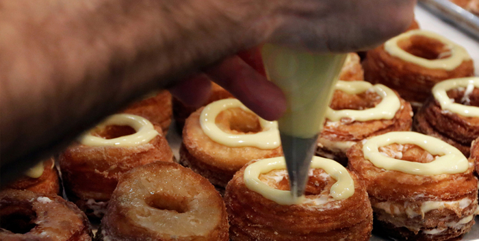 1. Cronut 可颂甜甜圈 可颂甜甜圈是全球别出心裁的美食排行榜上绝对的第一名。美国纽约的Dominique Ansel Bakery拥有该产品的商标权。人们会在这里排长队等待着5美元一个的可颂甜甜圈,而且每人限购两个。 2. Ramen Burger 拉面汉堡 拉面汉堡早已是日本街头美食的一部分。日裔美国人Keizo Shimamoto利用酥脆的拉面面包这一概念,将牛肉饼、大豆酱和许多大葱混搭在一块制成了新兴的拉面汉堡。目前,这种拉面汉堡只在周六的美国纽约布鲁克林Smorgasburg市场上限量销售。 3. Sandwich Hamburger 鲜味汉堡 鲜味汉堡以新鲜食材为传统美式快餐注入高级餐饮元素,配以考功夫花心思的烹调时间与技巧制作而成。鲜味汉堡的主料是绞碎的牛肉和鲜味老抽,放上香菰、焦糖洋葱、烤番茄、一片帕尔马干酪酥和鲜味番茄酱,这种汉堡绝不是传统的汉堡味道。 4. Gourmet…