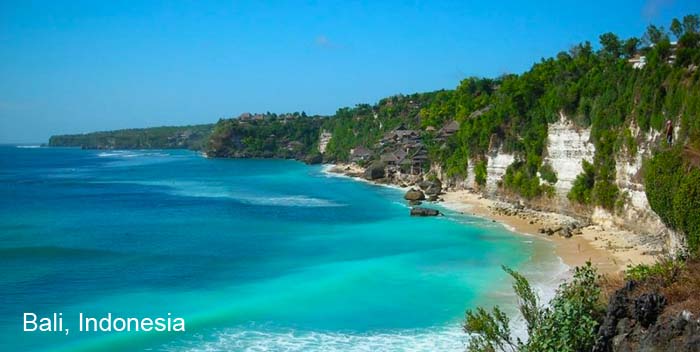 TOP 2 Bali, Indonesia 印尼峇里岛是许多喜爱刺激冒险及需要舒压的游客最爱的度假胜地。 拥有白色沙滩的峇里岛,其外海适合潜水,而陆地上丛林茂密,在林中的石庙可看见很多猴子。 另外,走一段崎嶇不平的路到巴杜尔活火山山顶,可看见令人赞叹美景,辛苦跋涉后, 就到SPA 馆,好好地舒缓你酸痛的肌肉。