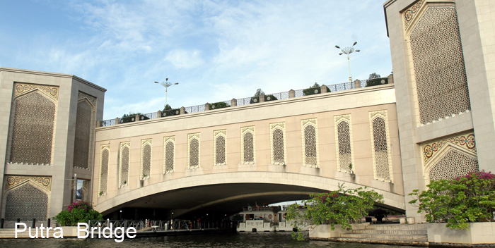 TOP 4 普特拉桥,雪兰莪 这是一座长达435米的溷凝土大桥,连接雪兰莪的行政区与综合开发区。建筑的伊斯兰风格参照伊朗的伊斯法罕清真寺,建筑造型最大的特点是那四根宏伟典雅的金黄色墩柱,上面设有观光台,站在上面可以让太子湖的风景一览无遗。
