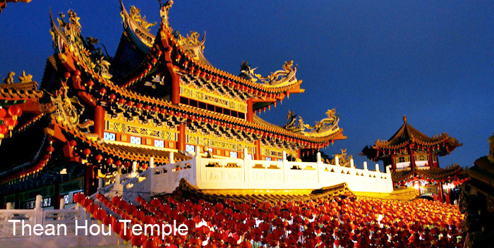 TOP 7 天后宫,吉隆坡 寺庙由雪隆海南会馆于1987年建成,其建筑设计彷照中国的传统建筑,大殿屋顶可见岭南式风格的龙、凤、鱼等瑞兽,旁殿和牌楼屋顶则有华北式风格的各种嵴兽,色彩丰富鲜明且对比强烈,整座建筑散发着浓烈的传统中华文化韵味。