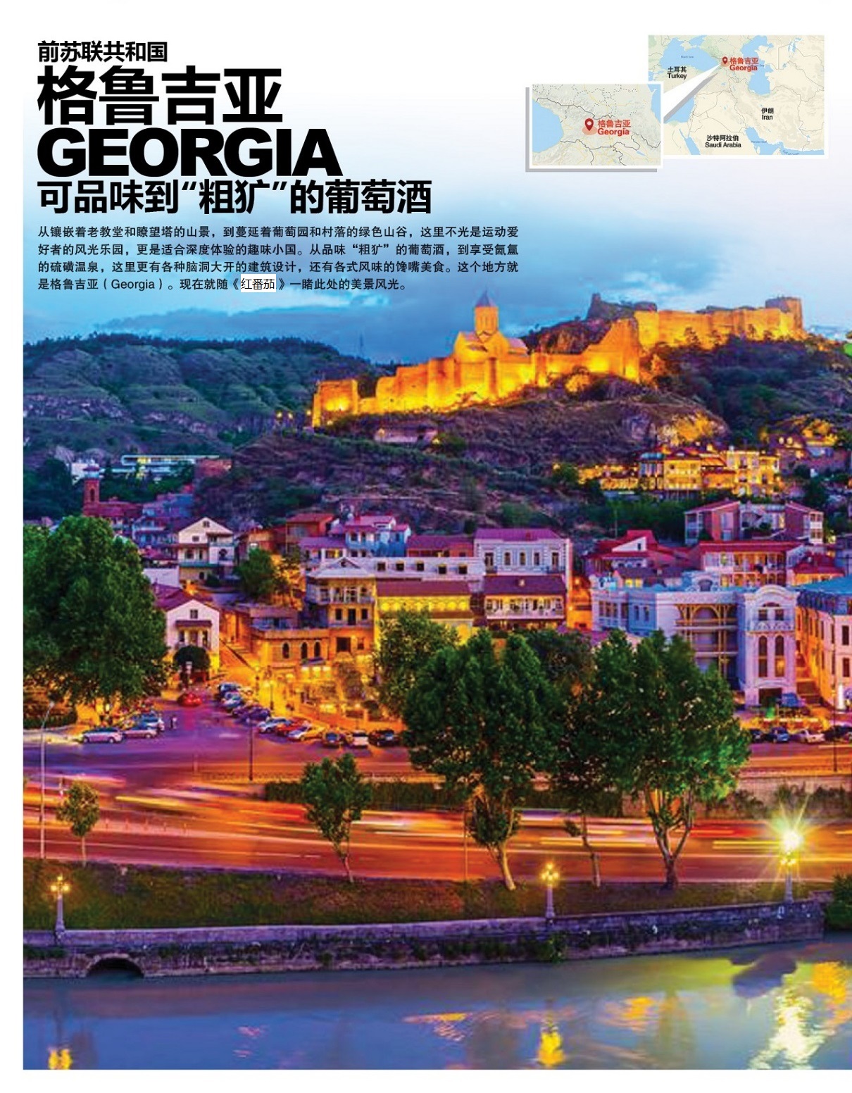 从镶嵌着老教堂和瞭望塔的山景,到蔓延着葡萄园和村落的绿色山谷,这里不光是运动爱好者的风光乐园,更是适合深度体验的趣味小国。从品味“粗犷”的葡萄酒,到享受氤氲的硫磺温泉,这里更有各种脑洞大开的建筑设计,还有各式风味的馋嘴美食。这个地方就是格鲁吉亚(Georgia)。现在就随《红番茄》一睹此处的美景风光。