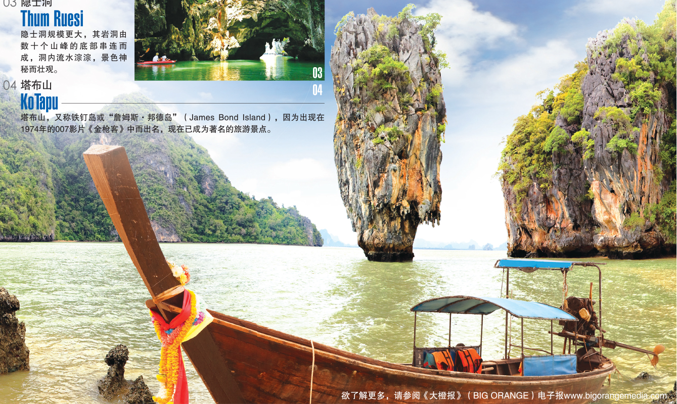 塔布山,又称铁钉岛或“詹姆斯·邦德岛”(James Bond Island),因为出现在1974年的007影片《金枪客》中而出名,现在已成为著名的旅游景点。
