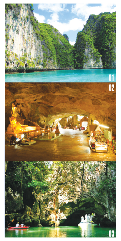 从普吉岛前往攀牙湾的旅途沿岸,有佛庙洞(Suwanakhula Cave)和隐士洞(Thum Ruesi)两个石灰岩洞。佛庙洞洞内面积宽广,有各式千奇百怪的石笋以及耀眼的白色钟乳石,有的入口处还有一支弯曲细长的石笋。
