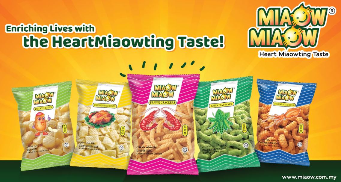 Miaow Miaow从1975年于柔佛峇株巴辖开始以家族企业起步,现已发展成马来西亚领先零食产品制造商之一。迄今为止,Miaow Miaow是世界各地喜爱的品牌,深受全球40多个国家各年龄层人士欢迎与享用。