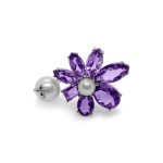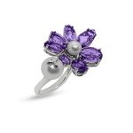 体积可灵活调动的“紫兰花戒指”由不同的形状组成组成,并以紫水晶作为花瓣,而张恩妮情有独钟的珍珠位居在中,另外还有一颗珍珠和一只小蝴蝶在旁衬托。这个设计呈现出花朵在我们两指之间自然飘动的画面。