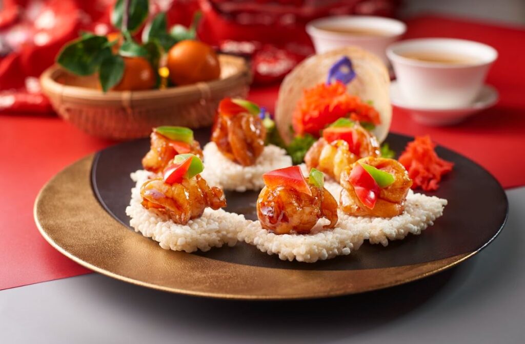 在中餐厅Wan Chun Ting,拥有32年粤菜经验的中餐行政总厨Leong Weng Heng将在每一道节日菜肴中展示他精湛的技艺,将节日用餐体验变成令人难忘的体验。这里有三种吉祥套餐供顾客选择,分别是每人258+令吉的繁荣套餐、每人288+令吉的幸运套餐以及每人388+令吉的财富套餐。与此同时,新春当然也少不了捞鱼生,包括素鱼生、海蜇鱼生、酥炸软壳蟹鱼生、鱼生配脆皮银鱼、挪威三文鱼和圣女果、香脆鱼皮鱼生、雪梨鱼生以及10头鲍鱼鱼生。此外,节日期间还提供新春单点菜肴和点心菜肴。