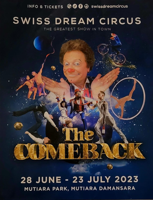 影音The “COME BACK” of Swiss Dream Circus from June 28 to July 23, 2023 in Mutiara Damansara Redtomato AdminJul 20, 2023Jul 20, 202301 mins Post navigation Previous: CLIMATE CHANGE : PUBLIC FORUM on 23/7/23Next: 多元重工与吉利携手招商引资发展汽车高科技谷
