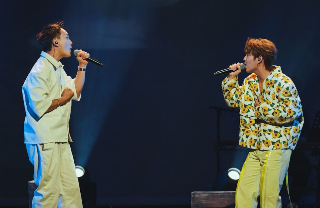 除了演唱自家金曲,刘界辉也与音乐总监Hanz郭文翰组成的乐手团,以不插电的方式演绎了《三个字》、《追》等经典情歌,听到耳朵怀孕的乐迷,一直高喊“听不够”,刘界辉更祭出刚刚在《舞台2023》获得总冠军的李佩玲出场,二人演绎经典合唱情歌《我的回忆不是我的》,超班演绎让全场高呼超好听,李佩玲笑言这首歌是她除了《喜欢你》之后唯二懂得唱的广东歌:“我还是用拼音来练习的。”刘界辉更问全场“她唱广东歌好听吗?”乐迷嗨喊“很好听!”为她注入满满的信心!