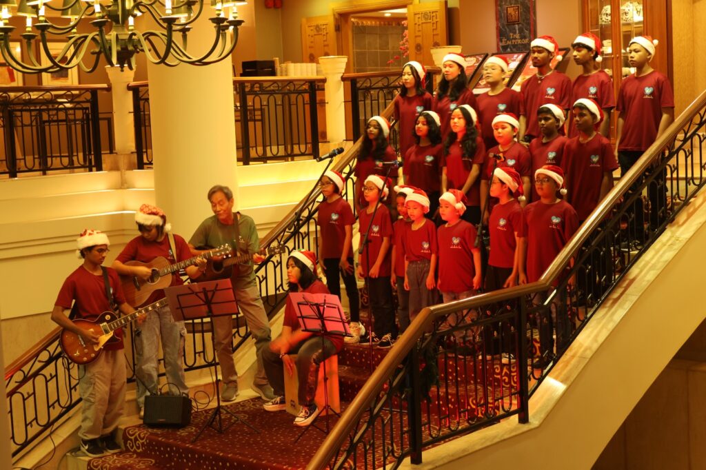 The hotel’s Christmas Lighting Ceremony, held on 27 November, set a heartwarming tone for the season. Children from Good Samaritan Home filled the hotel with festive cheer through joyful caroling, moving guests with their harmonious voices. As part of its commitment to community support, Dorsett Grand Subang contributed RM2,000 to the home, while Kiwanis Bukit Kiara added to the evening’s generosity with donated stationery sets for the children.