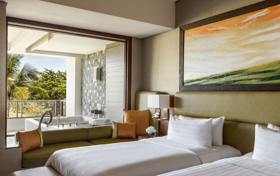 度假酒店整体住宿空间划分为花园翼(Garden Wing)与海洋翼(Ocean Wing)两大区域,共提供超过360间套房,涵盖多种房型设计,无论是浪漫情侣度假或家庭休闲之旅,都能找到理想选择。所有套房均设有私人阳台,让旅客可远眺葱郁花园或辽阔海景,在宁静空间中享受度假时光。